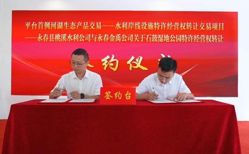 当天,平台首例河湖生态产品交易项目顺利签约落地。永春金禹水利有限公司以1200万元竞得永春县桃溪水利建设发展有限责任公司所属石鼓湿地公园的水利岸线年使用经营权,后续将进行休闲旅游、露营基地、研学科普等生态文旅项目的开发运营。交易中明确了权属边界、特许经营内容及收益分配等关键事项,不仅为市场主体合规开发利用提供制度保障,也为后续河湖生态产品交易提供了可参考的案例范本。